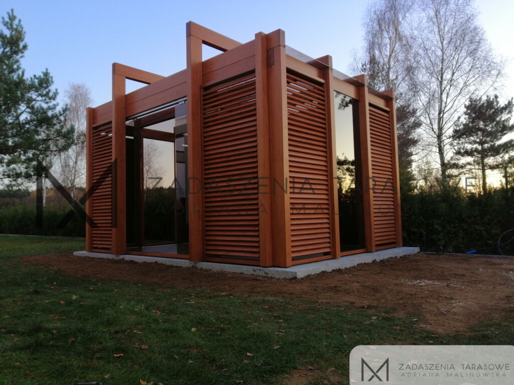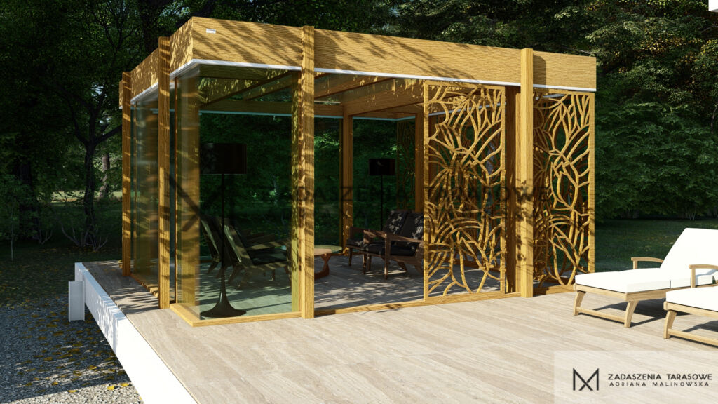 Certyfikowane materiały użyte do wykonania konstrukcji altany z drewna pozwalają na zastosowanie szeregu rozwiązań zabudowy ścian. Ażurowe kratki, listewki czy płotki skośne, ustąpiły miejsca rozwiązaniom dedykowanym do zabudowy zewnętrznej. Obecnie w ścianach częściej spotkać można szklane panele, żaluzje, pionowe lamele czy screeny materiałowe. Różnorodność oferty pozwala na skomponowanie funkcjonalnej zabudowy altany. Tworzone w ten sposób wnętrza stają się bardziej dostępne dla użytkownika w różnych warunkach pogodowych. Jest to element na który obecnie należy zwrócić szczególną uwagę. Dzięki nim pora roku przestaje mieć znaczenie przy planowaniu spotkań ze znajomymi w ogrodzie.