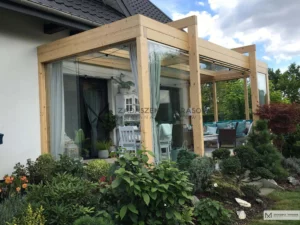 W naszych konstrukcjach stosujemy szkło hartowane które instalujemy w ramach konstrukcyjnych poprzez wklejanie. Dzięki temu rozwiązaniu szkielet konstrukcji jest sztywniejszy. Przesuwne panele szklane wykonane ze szkła bezpiecznego, można otworzyć lub zamknąć. Wystarczy przesunąć panel szklany na bok tarasu i cieszyć się otwartą zabudową.