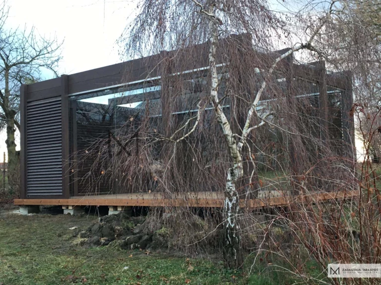 Projekt altany ogrodowej spełnia marzenia inwestorów o własnej strefie wypoczynkowej w otoczeniu natury. To eleganckie i funkcjonalne rozwiązanie, które łączy komfort, prywatność i piękno przyrody. Altana ogrodowa z podłogą stworzona z dbałością o szczegóły, certyfikowane materiały i elastyczne elementy, takie jak przesuwne ściany i żaluzje, zapewniają wyjątkowe doświadczenie i relaks na świeżym powietrzu.