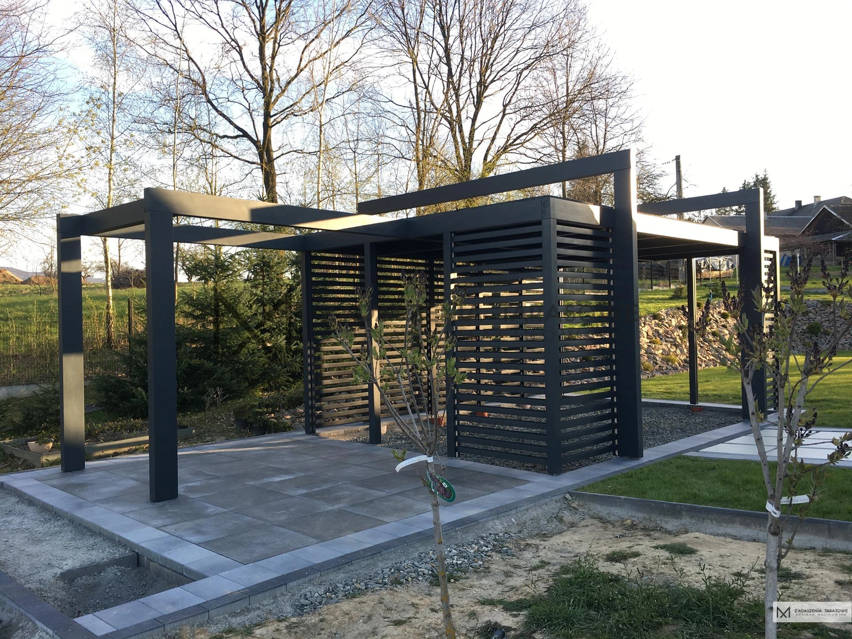 Altana w kolorze szarym z pergolą – nowoczesna funkcjonalność