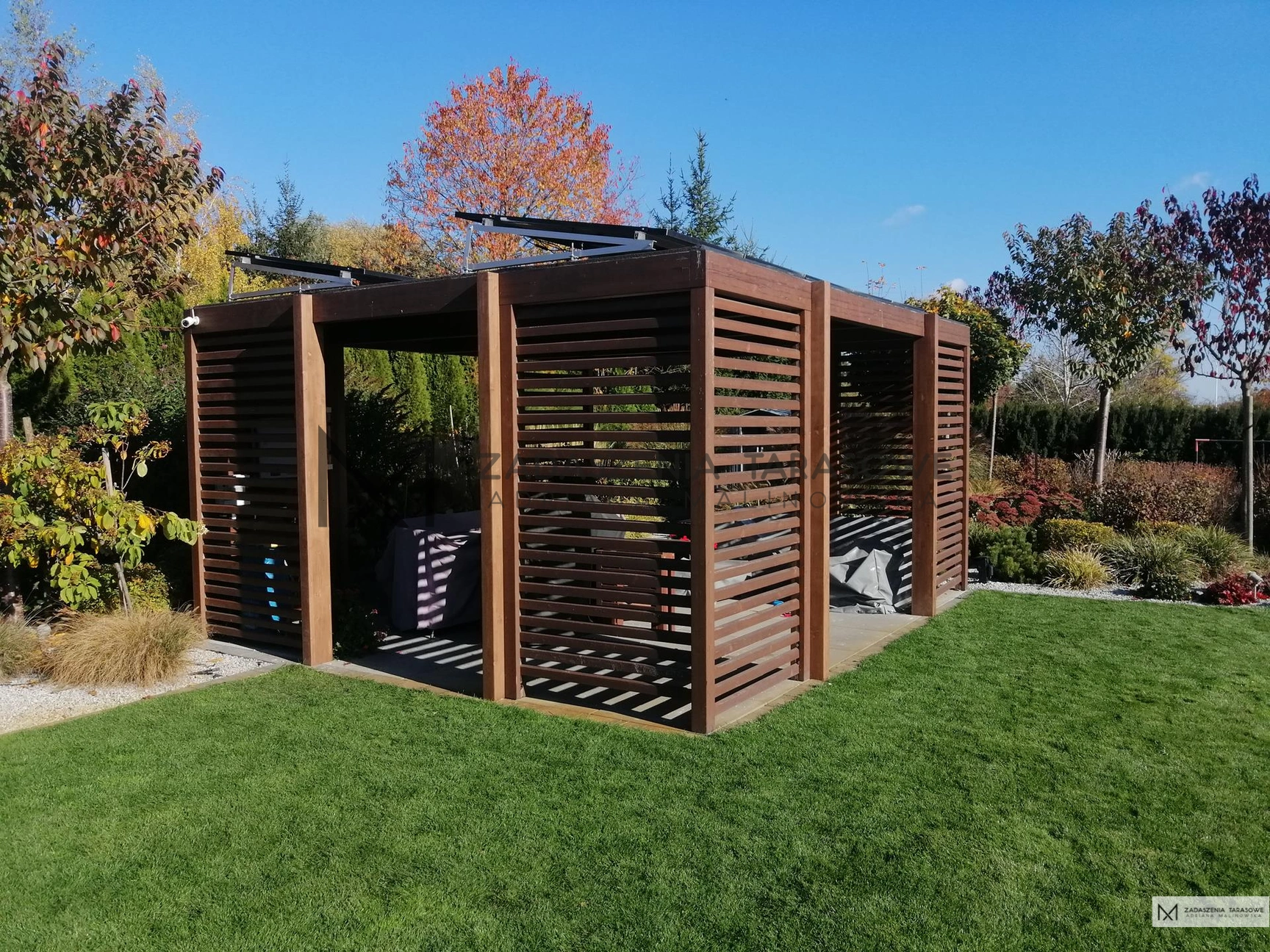 Altana z fotowoltaiką – rozwiązanie do małych ogrodów.