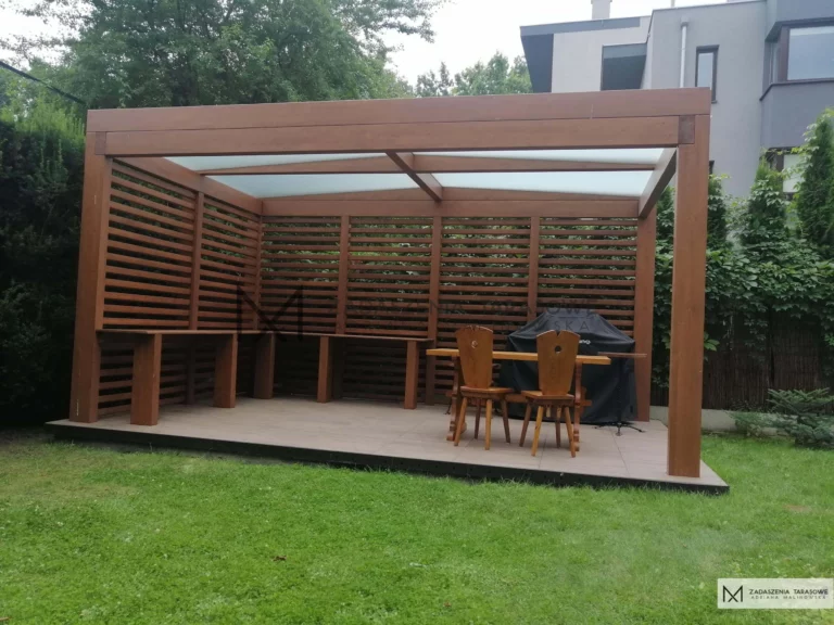 Takie altany wykonujemy również w wersji miejskiej. Projekt Altana w mieście to kwintesencja połączenia nowoczesnego wyglądu z funkcjonalnością i bezpieczeństwem.