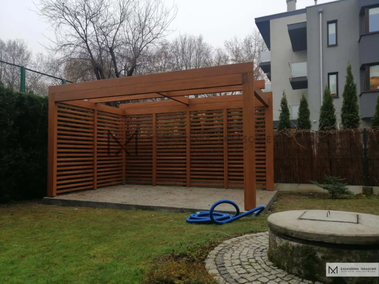 Kolorystyka: Altanka została pomalowana w ciepłym odcieniu dębu złocistego, co nadaje jej elegancki i naturalny wygląd.