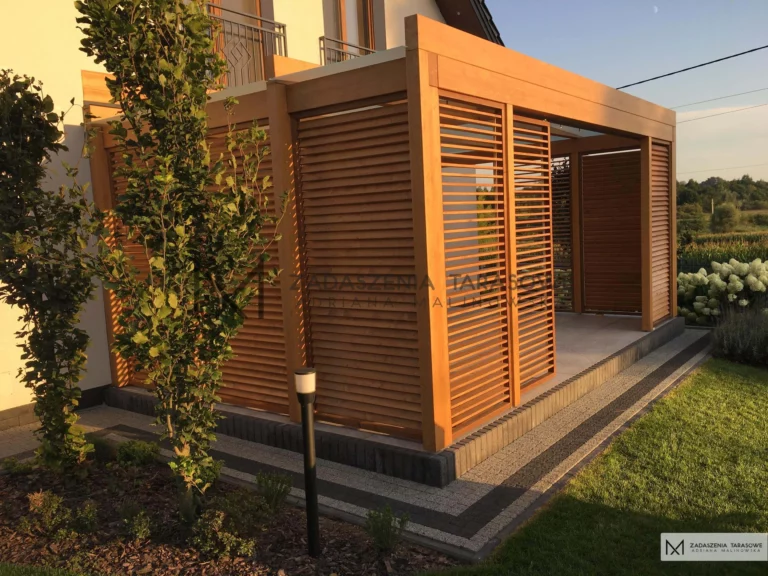 Efektem końcowym naszej metamorfozy tarasu jest przekształcenie zaniedbanego miejsca w luksusową oazę. Teraz taras stanowi harmonijną całość, w której estetyka idzie w parze z funkcjonalnością. Drewno klejone, impregnowane i pomalowane na złoty dąb nadaje mu elegancki wygląd, a innowacyjny dach z szkłem mlecznym gwarantuje komfortowe warunki użytkowania przez cały rok. Żaluzje pozwalają dostosować oświetlenie do naszych potrzeb, a także chronią przed niepożądanymi spojrzeniami.