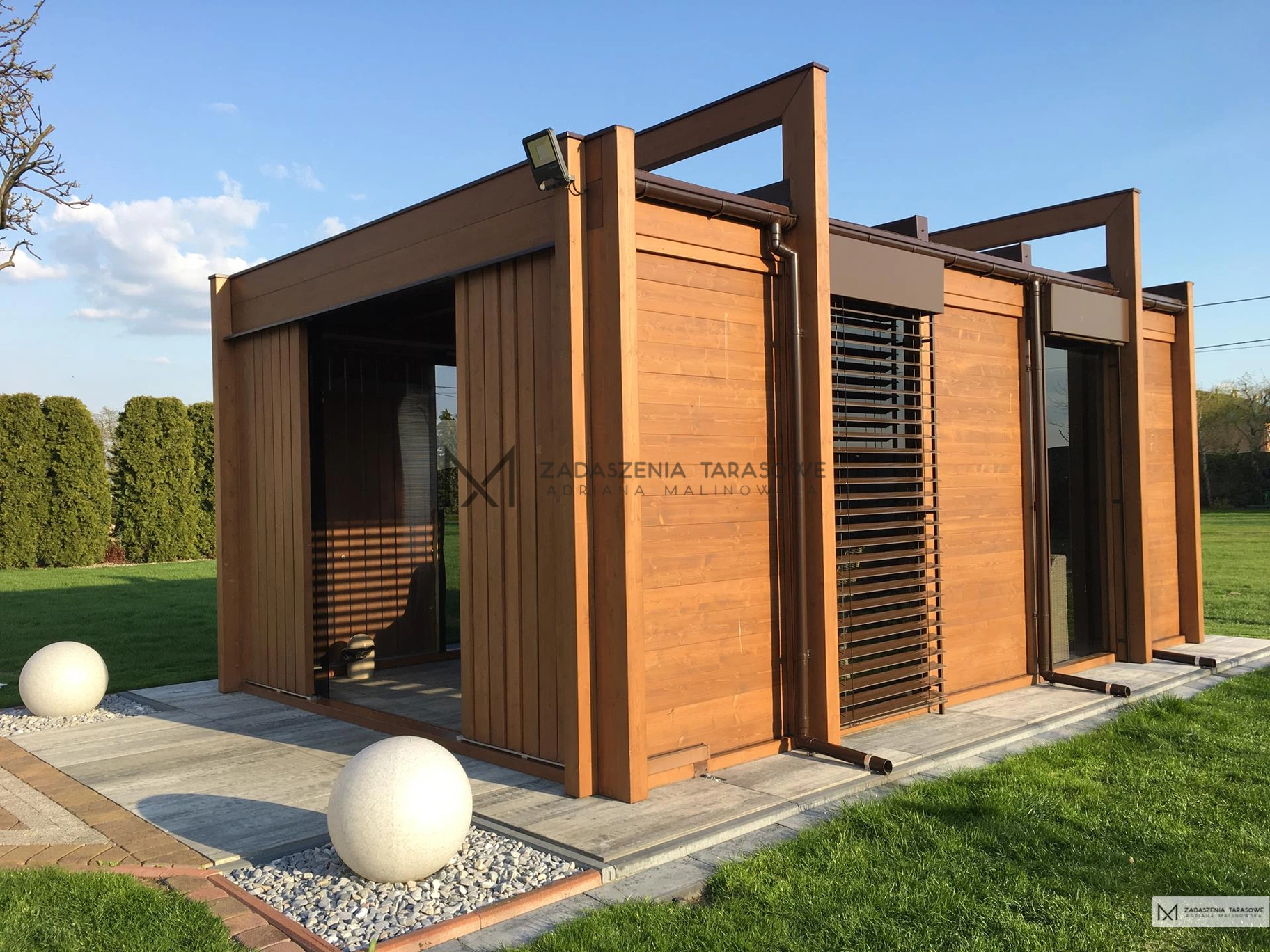 Nowoczesna altanka ogrodowa – dodatkowa zabudowa ścian.