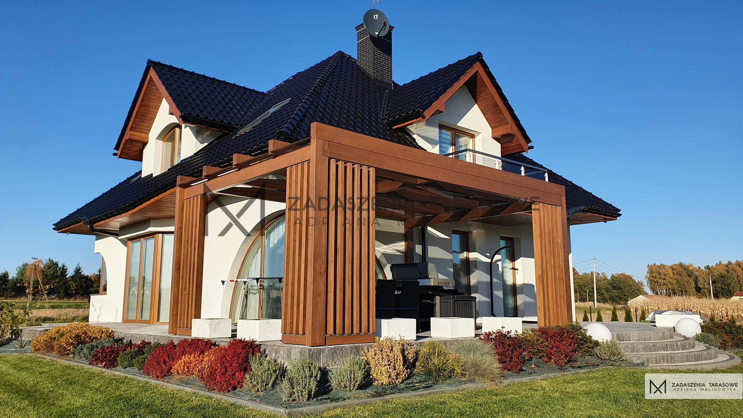 Klasyczna elegancja i nowoczesna lekkość – te określenia najlepiej oddają dualizm tego nowoczesnego zadaszenia tarasu z lamelami i szkłem. Estetyczna zabudowa stworzyła właścicielom prawdziwy salon w ogrodzie, umożliwiła odpoczynek i nieformalne spotkania z przyjaciółmi już od wczesnej wiosny aż do pierwszych jesiennych chłodów. Realizacja pokazuje, jak niewiele trzeba, by zwiększyć funkcjonalność, jaką mają tradycyjne tarasy przydomowe. Zadaszenia – odpowiednio zaprojektowane – potrafią dodać im klasy, elegancji i niekwestionowanego uroku.a