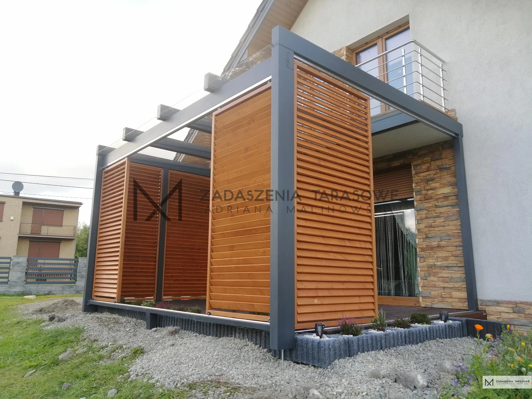 Nowoczesne zadaszenie z żaluzjami – zabudowa ścian.