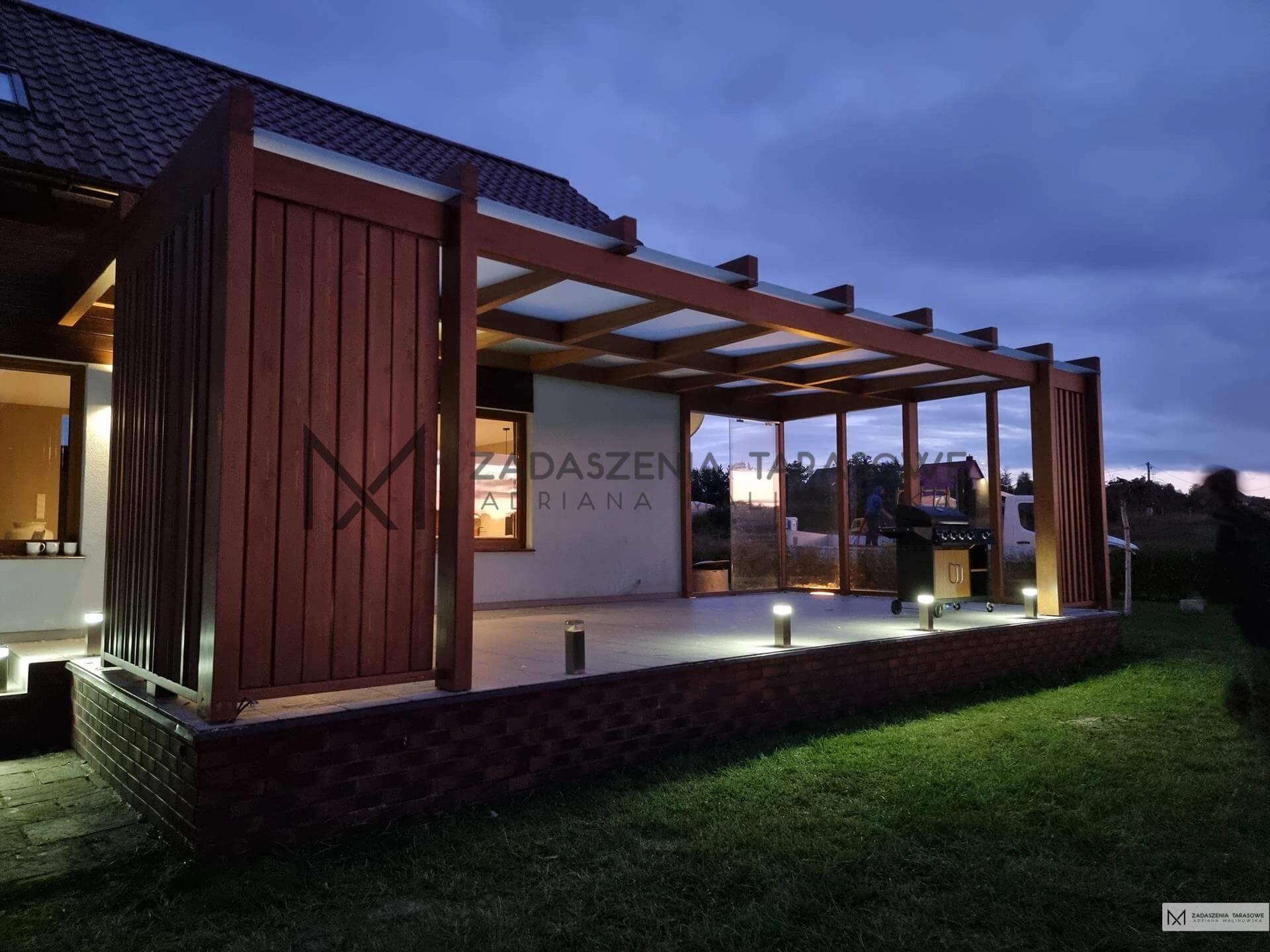 Taras z zadaszeniem z lamelami – drewno w roli głównej
