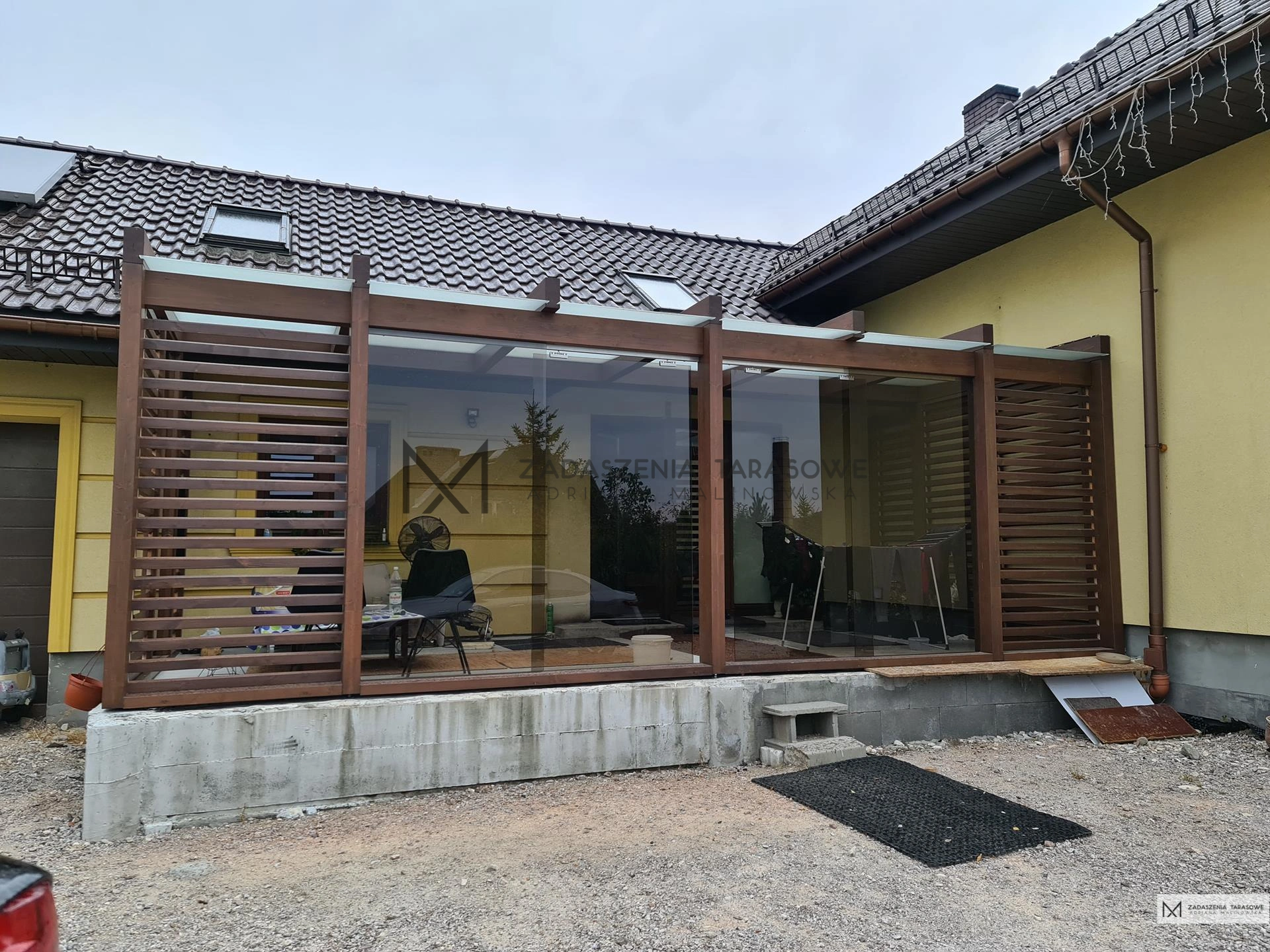 Zadaszenie nad taras, elementy dekoracyjne w projekcie .
