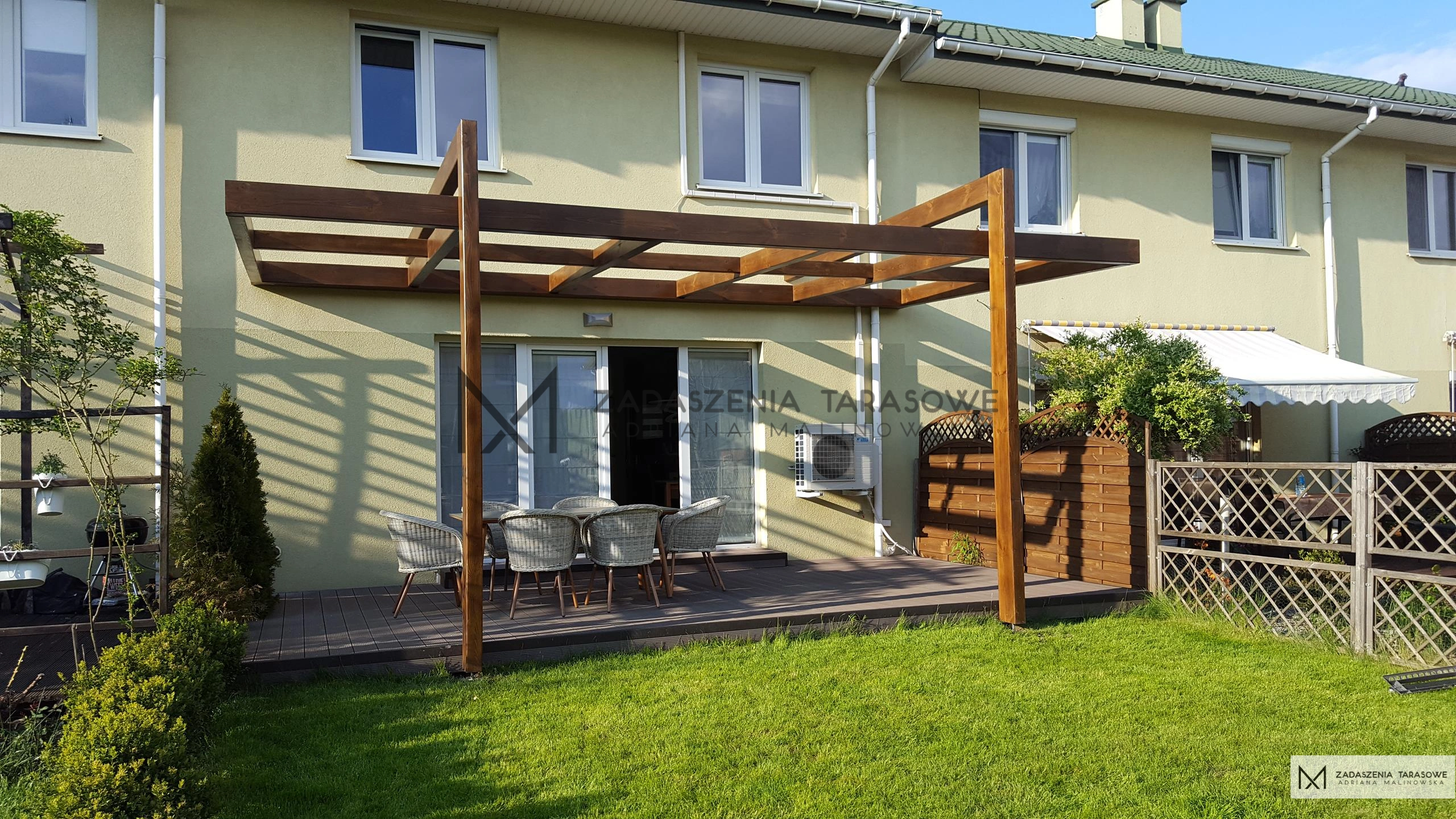 W zabudowie szeregowej wykonaliśmy również Drewniane zadaszenie tarasu.